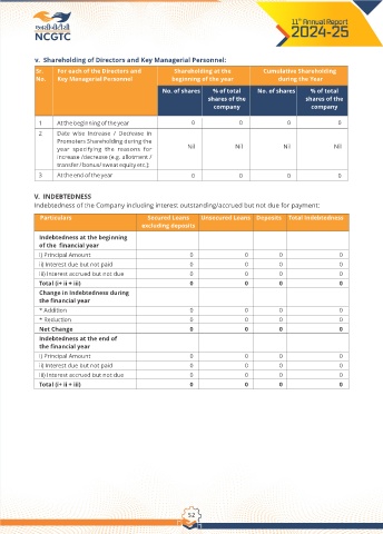 v. Shareholding of Directors and Key Managerial Personnel: